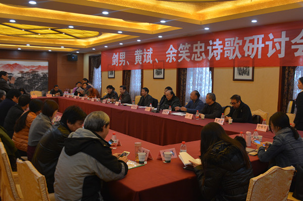 剑男,有诗歌入选各种选集及中学语文实验教材,著有《激愤人生》《散页与断章》《剑男诗选》;黄斌,1993年获《诗神》全国诗歌大奖赛一等奖,与武汉诗友合作编辑《象形》,诗集《黄斌诗选》获第八届屈原文艺奖;余笑忠,曾获《星星诗刊》《诗歌月刊》联合评选的2003中国年度诗歌奖、2005-2006年度后天诗歌奖、第三届扬子江诗学奖·诗歌奖、第十二届十月文学奖·诗歌奖,著有《余笑忠诗选》《长痛中醒来》。省作协党组书记、副主席朱训集说:“这三位诗人是目前湖北诗坛实力派的代表,希望与会专家共同探讨三位作家的诗歌创作﹐借助专家的力量对作品进行点拨﹐探究其创作给湖北文坛带来的影响与启示。