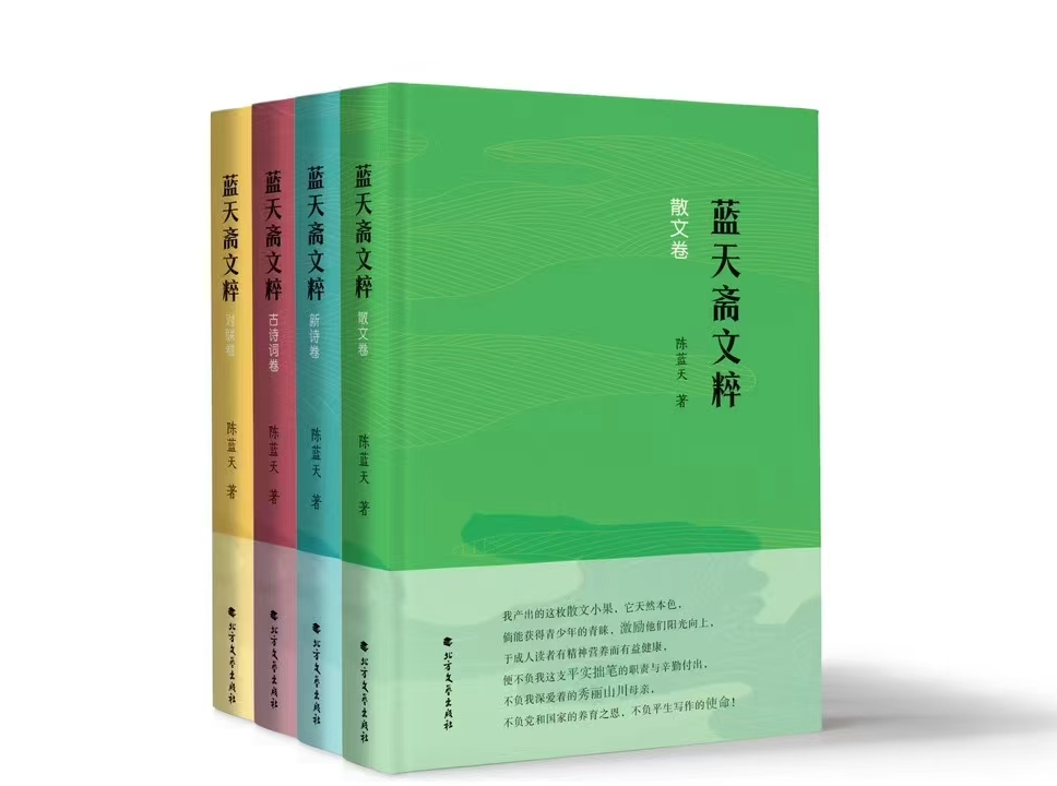 《蓝天斋文粹》由北方文艺出版社2024年5月出版发行。全书共分为散文卷、新诗卷、古诗词卷和对联卷,共四卷本。散文卷由“万物有灵”“岁月留痕”“情牵故乡”“温馨亲情”“生活细语”五辑合成。新诗卷由“河山恋歌”“桑梓亲情”“叶绿花红”“爱心如春”与“管弦锣鼓”五辑集卷。古诗词卷则由格律诗、古体诗与词三部分构成,除简述格律诗与词的写作特点、写作常识、写作技巧外,还引用作者作品举例,论述诗词写作方法、技艺等理论要素。对联卷,汇聚作者几十年来创作联语精粹。联例与写作楹联技论并述,通俗易懂。