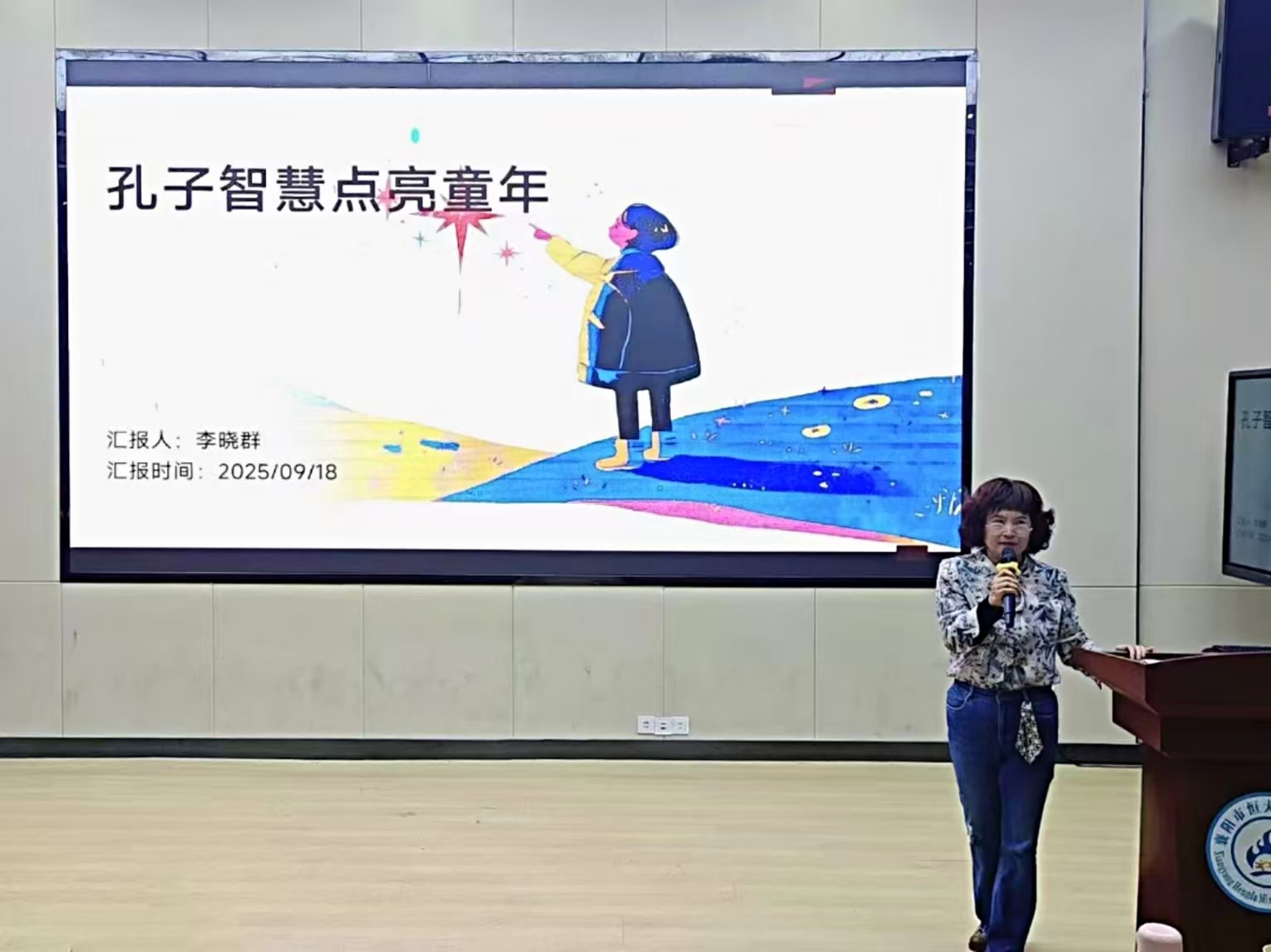 随后,活动进入核心环节。特邀专家李晓群老师为在场师生作了题为《孔子智慧点亮童年》的专题讲座。李老师以生动易懂的语言,讲述了孔子的生平与教育实践,系统阐释了以“仁、礼、智、信”为核心的儒家思想体系。她巧妙结合《论语》中的经典名句,引导同学们思考传统文化在当下的时代价值,鼓励大家将尊师重道、诚信友爱等美德践行于日常生活。