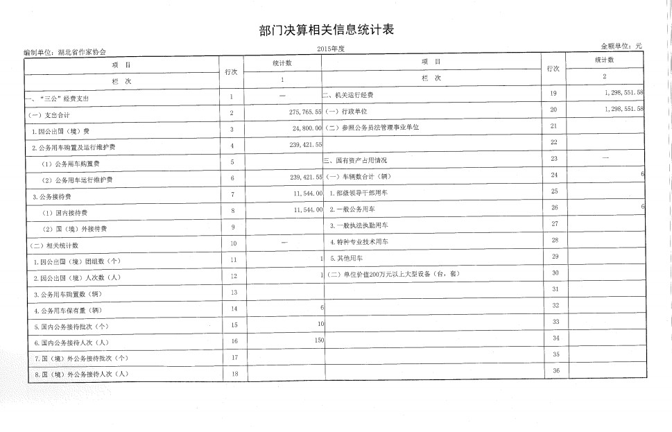 湖北省作家协会2015年部门决算
