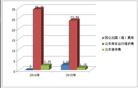 2015年因公出国(境)费用增加2.48万元,主要是单位领导随文联一起出访澳洲;2015年公务用车运行维护费用减少5.45万元,主要是当年8月施行省直机关公车改革,运行费用减少;2015年公务接待费减少1.1万元,比2014年减少50%。总之,“三公”经费在严格管理和监控下,比以前年度大大降低。