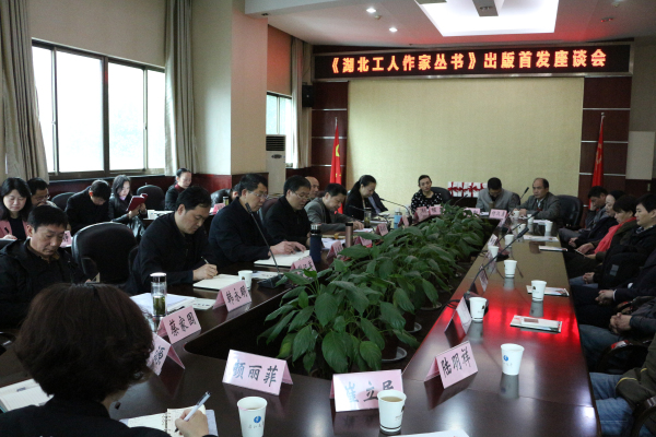 会议由省作协党组成员、副主席梁必文主持并介绍工人作家扶持项目基本情况;长江文艺出版社副社长王虹对丛书的出版情况作了说明;省作协党组书记朱训集发表讲话,肯定了工人作家的创作成果,表示省作协将继续重视本土重大题材精品创作。随后举行了丛书赠送仪式,到会领导分别向省、市图书馆、高校图书馆代表赠送了《湖北工人作家丛书》。到场的指导老师、工人作家代表、影视机构代表等都作了发言,对省作协打造长篇小说精品,为影视机构提供丰厚改编资源的做法给予高度评价。