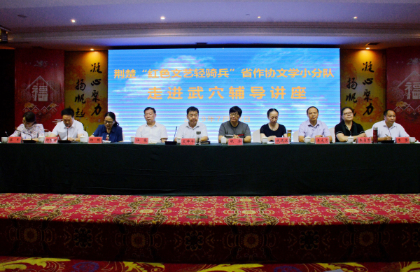 7月20日,在习近平总书记致信祝贺中国文联、中国作协成立70周年之际,荆楚“红色文艺轻骑兵”省作协文学小分队在第一时间走进武穴,举行大型文学创作辅导活动。上午9:00,武穴市武月酒店报告厅座无虚席,来自武穴市文联、作协及周边蕲春、黄梅三地作协会员共计100余人参加了此次文学辅导活动。省作协党组书记、常务副主席文坤斗,黄冈市文联党组书记、主席秦龙志等出席了活动。