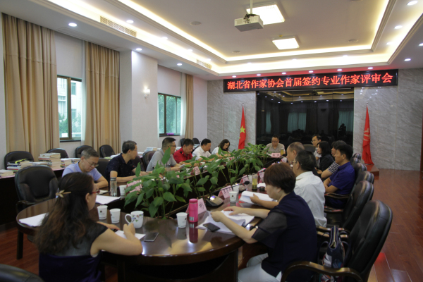 年初,省作协相继制定了《湖北省作家协会签约专业作家管理暂行办法》及《湖北省作家协会签约专业作家评审细则》,6月开始向社会公布首届签约专业作家招聘启事,截止7月10日,共收到48位作家的报名材料。8月31日,湖北省作家协会聘请了包括茅盾文学奖评委和鲁迅文学奖评委的省内外专家进行了首届签约专业作家评审。按照“公开公平公正、择优选拔”的原则,经过规范的程序、严格的筛选、严肃认真的评审,最终确定了朱朝敏(茱萸)、周芳、杨菊梅(黍不语)、普玄、谢络绎、舒辉波(按姓氏笔画排序)6名作家为湖北省作协首届签约专业作家。历经8个月时间,首届签约专业作家评审工作终于圆满结束。