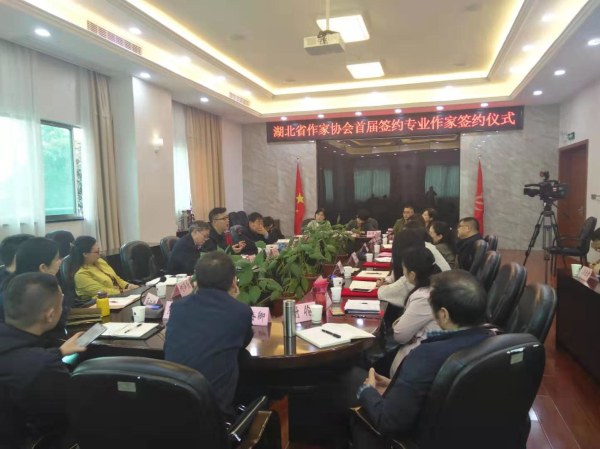 10月29日上午,湖北省作协首届签约专业作家签约仪式在省作协举行,省作协主席李修文主持,省作协党组书记文坤斗、副主席江清和、秘书长沈小群、首届签约专业作家、大师写作课学员等30余人参加了签约仪式。沈小群宣读《湖北省作协关于聘任普玄等6人为省作协首届签约专业作家的决定》,江清和与普玄、朱朝敏、周芳、谢络绎、舒辉波、黍不语6名作家签约,与会领导为首届签约专业作家颁发聘书。
