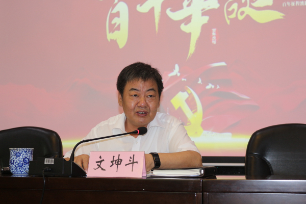 文坤斗结合个人党史学习体会,从四方面为大家上了一堂党课。一是从党的百年历史中懂理、信理,自觉运用党的创新理论指导实践、推动工作。他说,通过学习和思考,更加体会到我们中华民族之所以在中国共产党的领导下能够从站起来到富起来到强起来,逐步走进世界舞台的中央,关键在于中国共产党人能够不断进行理论创新,不断用新的理论指导革命、建设与改革开放;更加体会到百年党史就是一部马克思主义与中国革命建设改革发展实际相结合,不断进行马克思主义中国化的历史;更加体会到用习近平新时代中国特色社会主义思想武装头脑、指导实践、推动工作的重要性必要性。二是从党的百年历史中坚定信仰信念,增强推进中国特色社会主义现代化建设的信心。他从党的百年奋斗历程,到取得战疫重大战略性成果所彰显的中国强大的制度优势、精神优势和应对能力,深刻说明中国共产党为什么能、马克思主义为什么行、中国特色社会主义为什么好;三是从党的百年历史中强化忠诚、忠心,做忠诚干净担当的好干部。他说,在新时代,对党的忠诚关键体现在增强"四个意识",坚定“四个自信”,做到“两个维护”。忠诚忠心的落脚点在于立足本职,积极担当、忠实干事,积极为党工作;四是从党的百年历史中加深对党的文艺方针政策的理解,以习近平总书记关于文艺工作系列重要论述为指导,不断增强作协组织的政治性、先进性、群众性,发挥好作协职能和桥梁纽带作用,不断推动湖北文学事业高质量发展。
