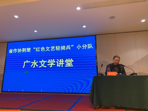 11月18日至19日,由党组成员、副主席耿瑞华和江清和带队,省作协荆楚“红色文艺轻骑兵”文学小分队,走进广水开展文学讲堂暨采风活动。省作协二级巡视员韩永明,副主席、文学院专业作家曹军庆,创研部一级主任科员、广水市武胜关镇副镇长(挂职)刘天琪及创联部相关同志,作家任蒙、冯慧、梁小琳、肖静,随州市委宣传部二级调研员、市作协主席蔡秀词,中共广水市委常委、宣传部部长邓小菲,市委宣传部常务副部长刘曦东,市文联副主席、秘书长陈永平,市作协主席黄海卿和广水市近百名文学爱好者参加活动。省作协创联部主任江福主持活动。