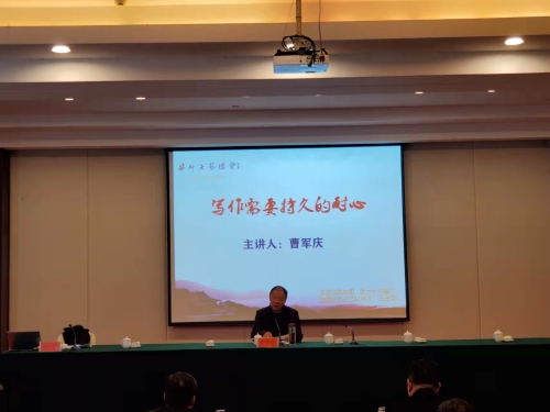 省作协副主席、文学院专业作家曹军庆以《写作需要持久的耐心》为题,结合个人文学创作实践,强调写作应该持之以恒,应该克服浮躁心态,应该注重文本叙事的精致,把“修改”作为提高写作能力的重要手段,并从真、善、美三个维度阐述了作品创作技巧,现场解答了学员们的提问。