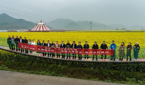 一河流碧玉,两岸染黄金。这是对排市油菜花田最美的诠释!过富河大桥,入排市,放眼望去,屋舍沿河错落有致,田垄阡陌绵延数里,万亩油菜扑面而来,阵阵清香沁入心脾。作家们穿行花海之中感受春日,体验乡村之美,收获乡村振兴的幸福感。