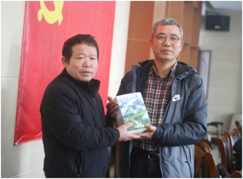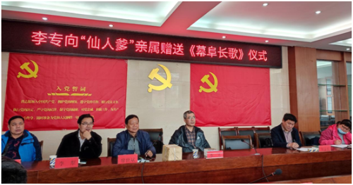 “仙人爹”本名刘应兴,是《幕阜长歌》主人公之一,是咸宁长歌重要传承人,也是省民协、省群艺馆命名的全省首批 7名“民间故事家”之一。“仙人爹”系咸安区浮山街道龙潭村刘津南组人,现已去世。李专向“仙人爹”亲属、浮山街道和与会者捐赠《幕阜长歌》30余册。