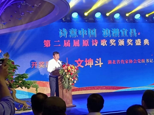 2022年6月1日,第二届“屈原诗歌奖”在湖北宜昌颁出。全国人大常委、中国作协原副主席、书记处书记、中国作协诗歌委员会主任,著名诗人吉狄马加,省文联党组书记、常务副主席张士军和省作协党组书记、副主席文坤斗,宜昌市领导马泽江、张桂华等亲临颁奖现场致辞,并为获奖者颁奖。