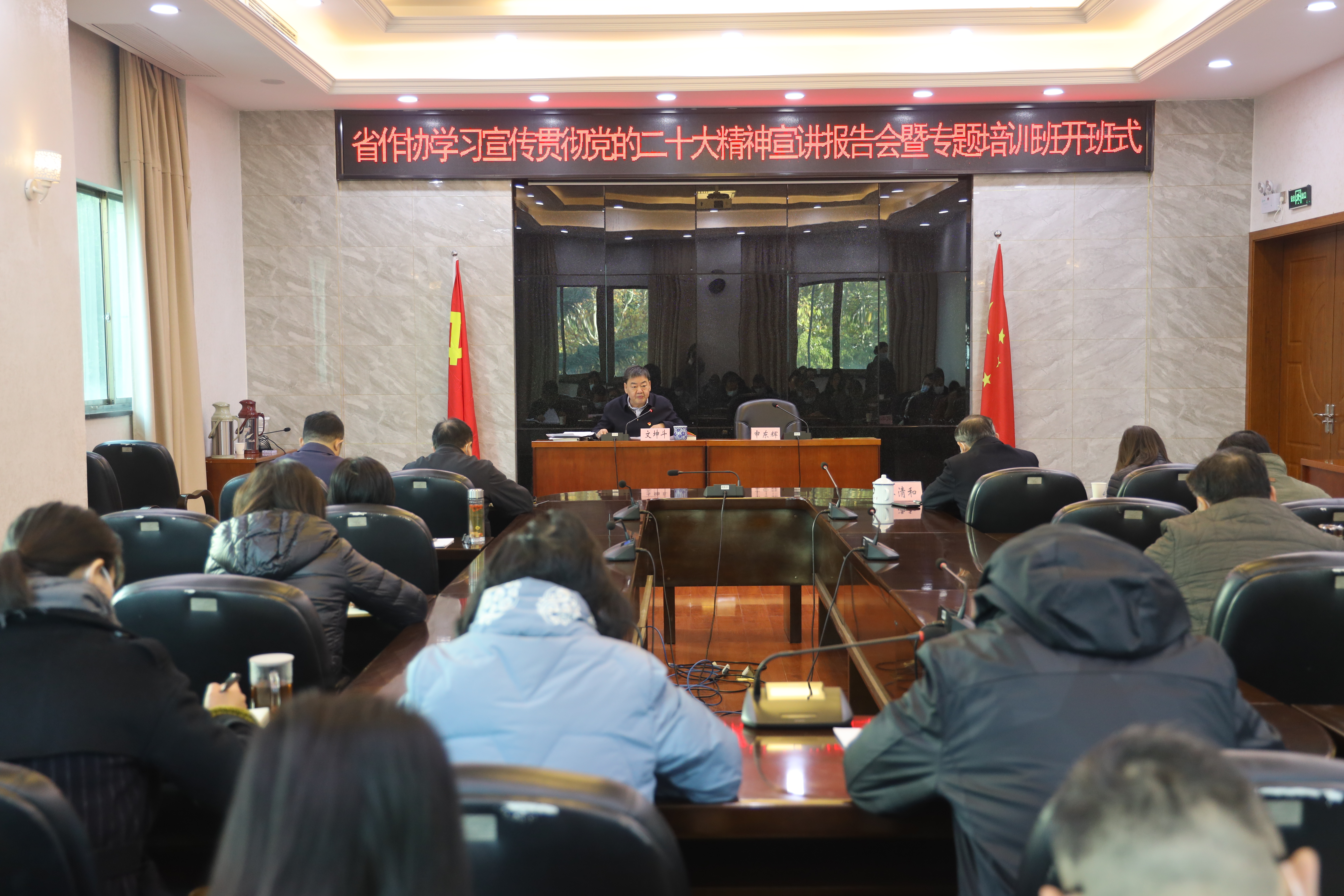 学习宣传贯彻党的二十大精神是当前和今后一个时期的首要政治任务。按照中央和省委关于学习宣传贯彻党的二十大精神统一部署,根据中央组织部、省委组织部《关于做好县处级以上领导干部学习贯彻党的二十大精神集中轮训工作的通知》要求,为推动省作协学习宣传贯彻党的二十大精神和县处级以上领导干部集中轮训工作落实见效,结合工作实际,省作协集中一周时间组织学习宣传贯彻党的二十大精神宣讲报告会暨专题培训班。