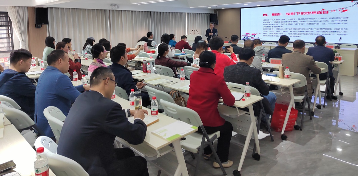 在讲座中,熊尉东结合自己的创作经验,从常见文艺形式的特点、各种文艺形式的共通性、文艺形式的互为底蕴三个大的方面展开,介绍了文学、书法、绘画、摄影、词曲、建筑、采风的特点,它们在意象丰富、角度独特、重点突出、留白想象、虚实结合、韵律顿挫、结构均衡、元素协调等方面的共通性,以及专与博、纵与横、文艺与生活、艺术与写作的关系,并重点介绍了艺术可以为写作起到的辅助作用。