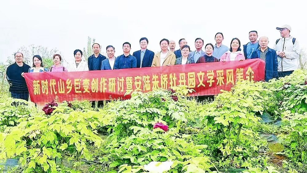 4月13日,孝感市作家协会新时代山乡巨变创作研讨暨工作例会在安陆朱桥牡丹园举行。市文联相关领导,市作协主席团、秘书处部分成员,市作协顾问及作家、诗人代表二十余人参加了活动。