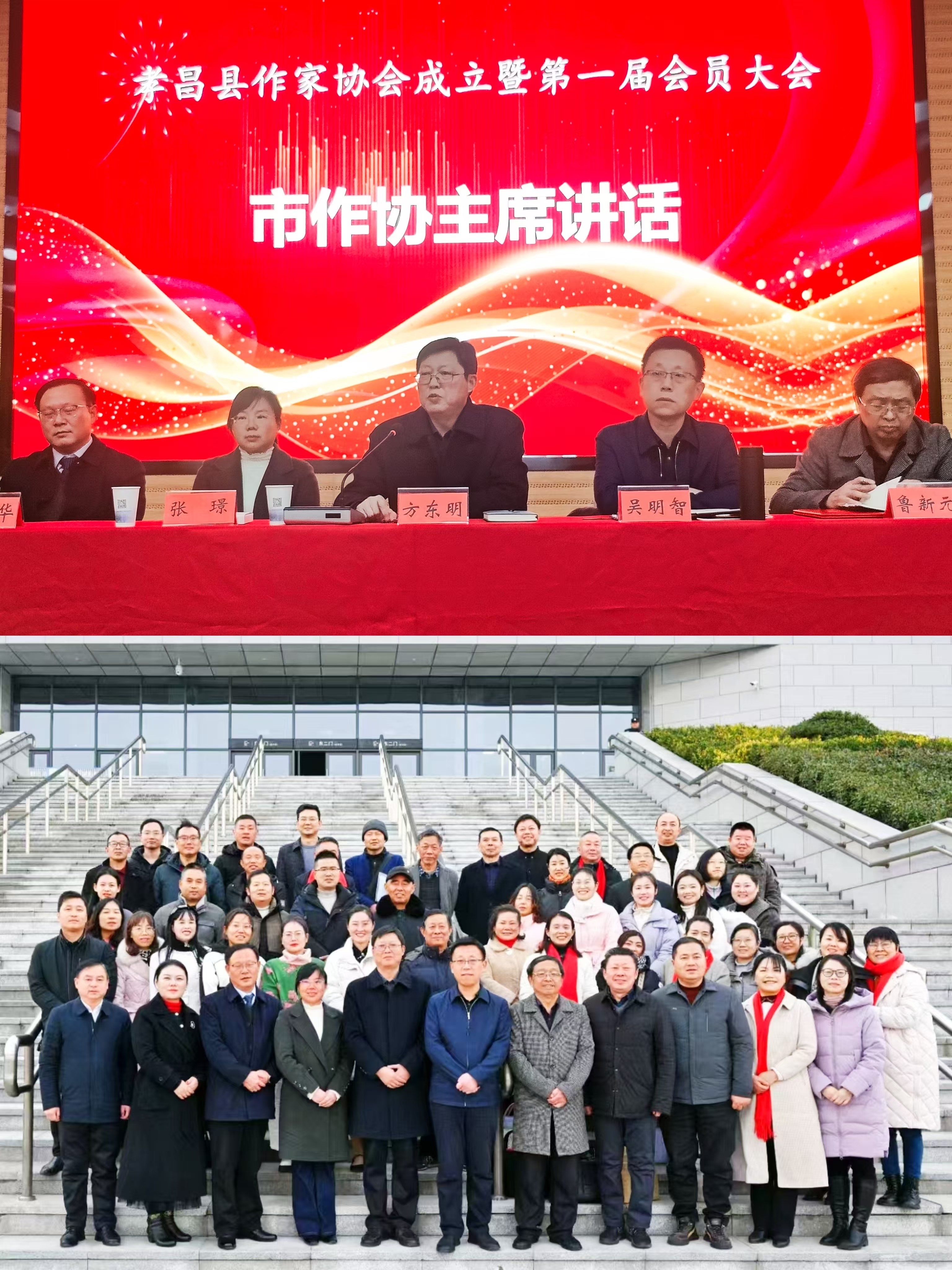 12月18日,孝昌县作家协会成立暨第一届会员大会在孝昌县文化中心举行。孝昌县委常委、宣传部部长吴明智,副县长张璟,县政府党组成员、办公室主任谈旭华出席。孝感市文联副主席、作协主席方东明,市作协副主席兼秘书长朱道能、副主席谭晓霞到会祝贺。孝昌县相关部门负责人及文艺界代表、入选会员共60余人参加会议。