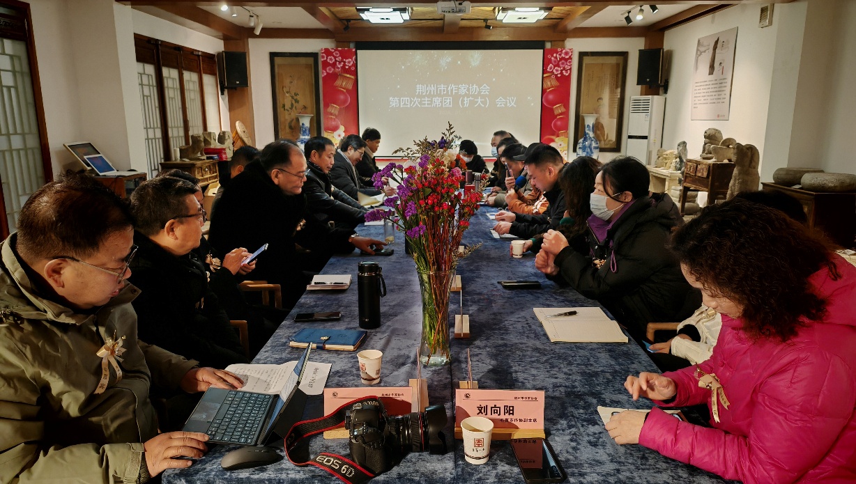 2025年1月11日上午,荆州市作家协会召开了第六届主席团第四次(扩大)会议,市作协主席团成员和部分副秘书长参加会议,会议由常务副主席兼秘书长郑泽华主持。各县市区作协分别就2024年的工作作了发言,各专委会主任及主席团委员就过去一年的履职情况进行了述职。市作协主席熊湘鄂作了年度工作报告。