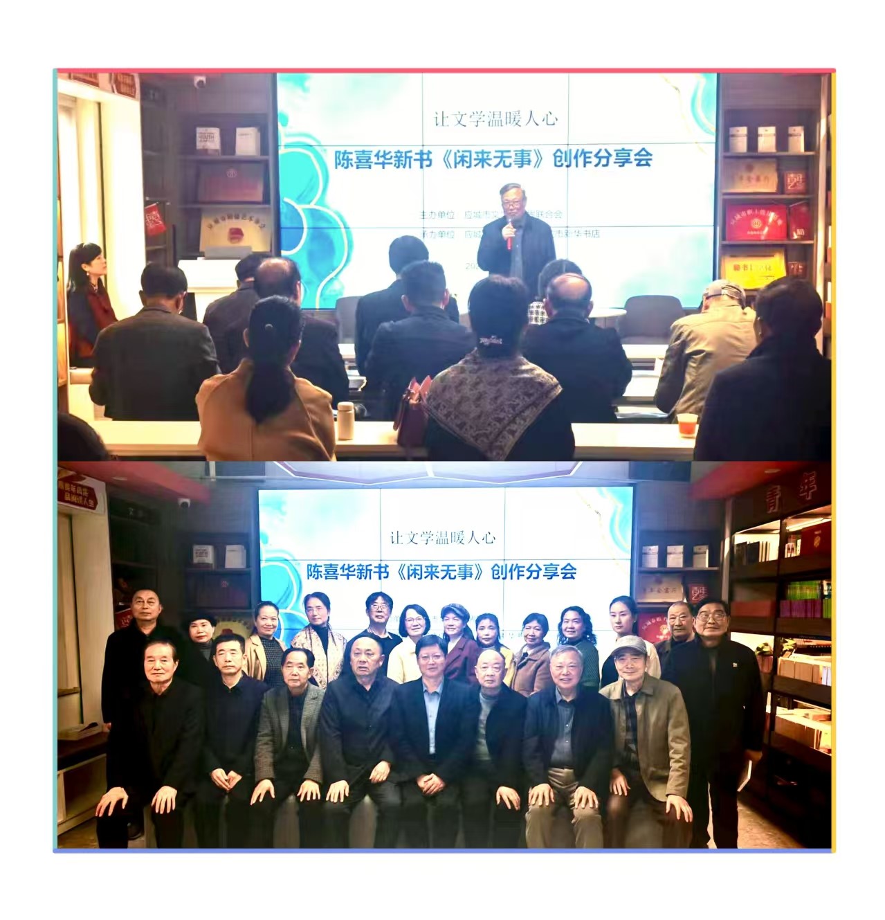 10月30日下午,由应城市作家协会举办的“让文学温暖人心——陈喜华新书《闲来无事》创作座谈会”在新华书店举行。孝感市文联副主席、作协主席方东明、应城市文联主席陈治、应城市作协主席李汉超以及特邀嘉宾、作协会员代表20余人参加了会议。