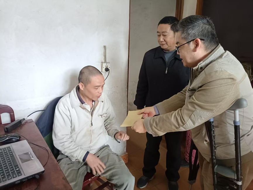 11月12日上午,黄冈黄州区作协主席孙建勇、副主席兼秘书长李忠厚一行到陈策楼镇张新湾村走访慰问特殊作者、村民张俊杰。