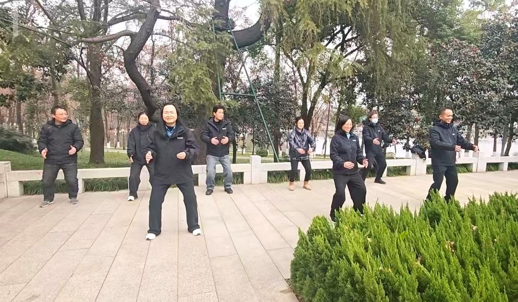 在屈原纪念馆门前的广场上,踢毽子与跳绳比赛同步进行,拉开了运动竞技的序幕。选手们轻盈的身姿与翻飞的毽绳、彩绳相映成趣,引来阵阵喝彩。拍篮球比赛更是扣人心弦,选手们专注的神情与清脆的拍球声交织成一曲活力乐章。特别值得一提的是在纪念馆门前进行的八段锦比赛,随着悠扬的音乐响起,职工们整齐划一、动作标准地完成了整套功法,展现了作协人动静皆宜、张弛有度的良好状态。东湖畔的健步走比赛,各工会小组你追我赶,充分展现了团队协作的力量。