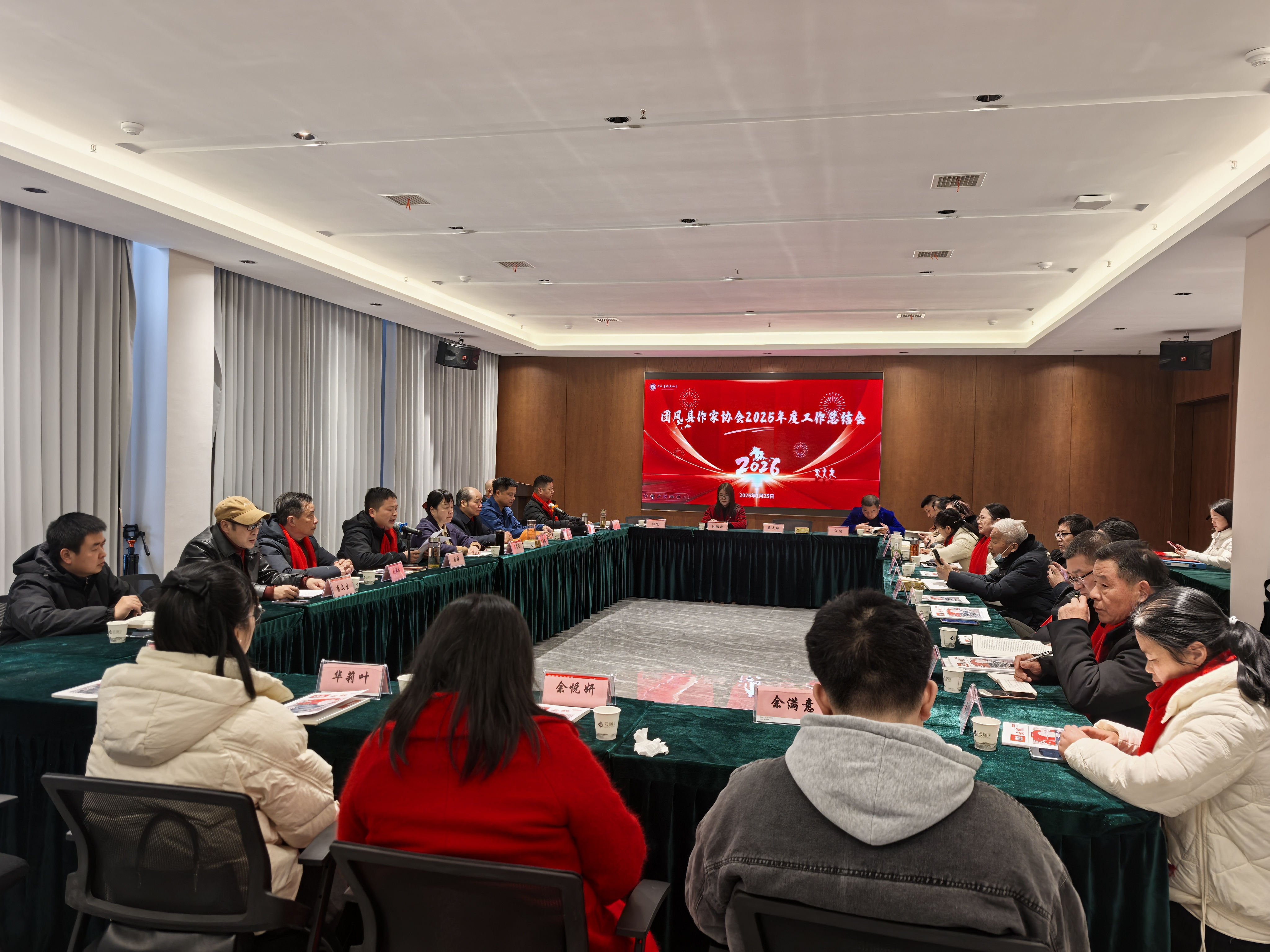 2026年1月25日上午,团风县作家协会2025年度工作总结会隆重召开。会议以习近平新时代中国特色社会主义思想和习近平文化思想为指导,全面总结2025年全县文学事业发展成效,科学部署2026年重点工作任务,凝聚全县文学工作者共识力量,为推动团风文学事业高质量发展、助力文化强县建设筑牢根基。