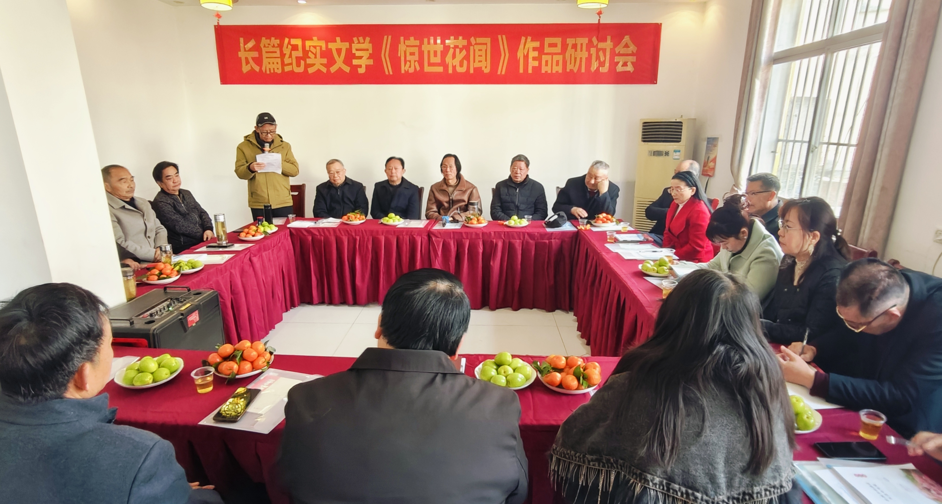 3月10日,由麻城市作家协会主办的长篇纪实文学《惊世花闻》研讨会在麻城举行。麻城市作协主席周胜辉主持研讨会,麻城市原文联主席熊明修等本市文艺界前辈、相关协会负责人出席会议。书的作者郑重建老师、书中主人公鲍在祥、对研讨会活动大力支持的麻城市龙腾生态园、麻城市阳光传媒有限公司等企业领导以及市作协部分会员代表等30余人参加研讨。