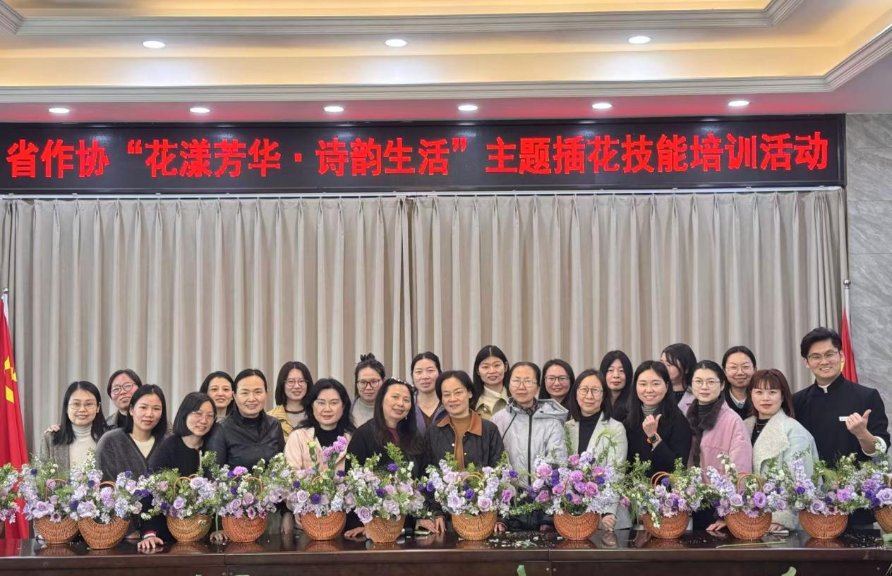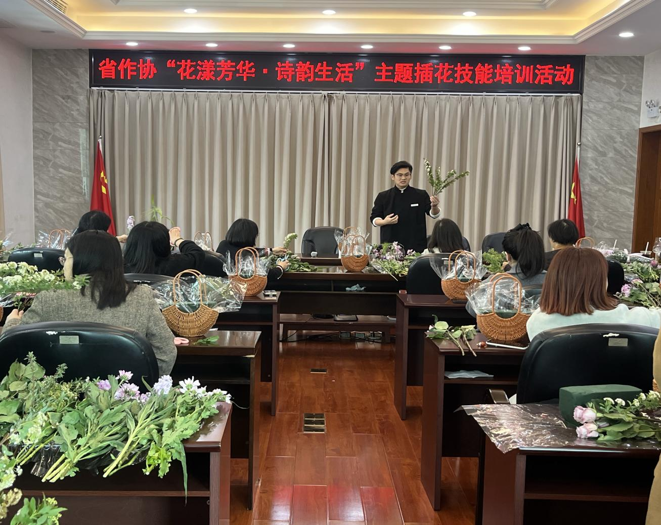 为庆祝“三八”国际劳动妇女节,丰富女职工精神文化生活,陶冶艺术情操,展现新时代女性积极向上、优雅自信的风采,3月11日下午,湖北省作家协会工会妇工委在机关二楼会议室组织开展了“花漾芳华·诗韵生活”主题插花技能培训。机关及所属单位全体在职女职工参加了此次培训。
