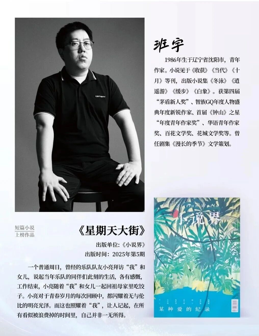 4月16日,首届小说年度风云榜发布。其中,李修文小说《到祁连山去》(首发《长江文艺》2025年第7期 )入选“中篇小说榜”,班宇小说《星期天大街》、陈春成小说《山石》入选“短篇小说榜”。