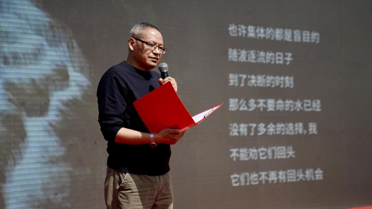 活动当日,知名诗人、朗诵艺术家与音乐人齐聚丹江之畔,与近100名当地群众共同聆听诗与水的共鸣,感受文学与乡土的交融。活动以“水”为核心意象,围绕“南水北调”“守护水源地”“一泓清水永续北上”“水与生命”“水与家园”等主题展开内容设计,通过主持串场、诗歌朗诵、乐队表演、公益赠书赠刊等多元形式,串联起一场形式轻巧、氛围温暖的文化交流活动。